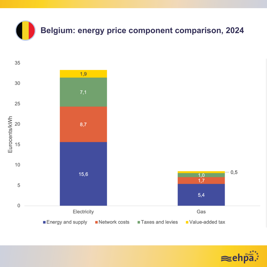 For example, Belgium has one of the highest electricity-to-gas price ratios in Europe, with electricity costing nearly four times more than gas for households. This is largely due to higher taxes and levies on electricity. As a result, heat pump uptake remains low, with heat pumps having a space heating market share of just 14.7%. This week’s announcement of a taxation change for 2026 that will decrease electricity costs by 3% and increase gas costs by 3% is a good first step to rebalancing cost.