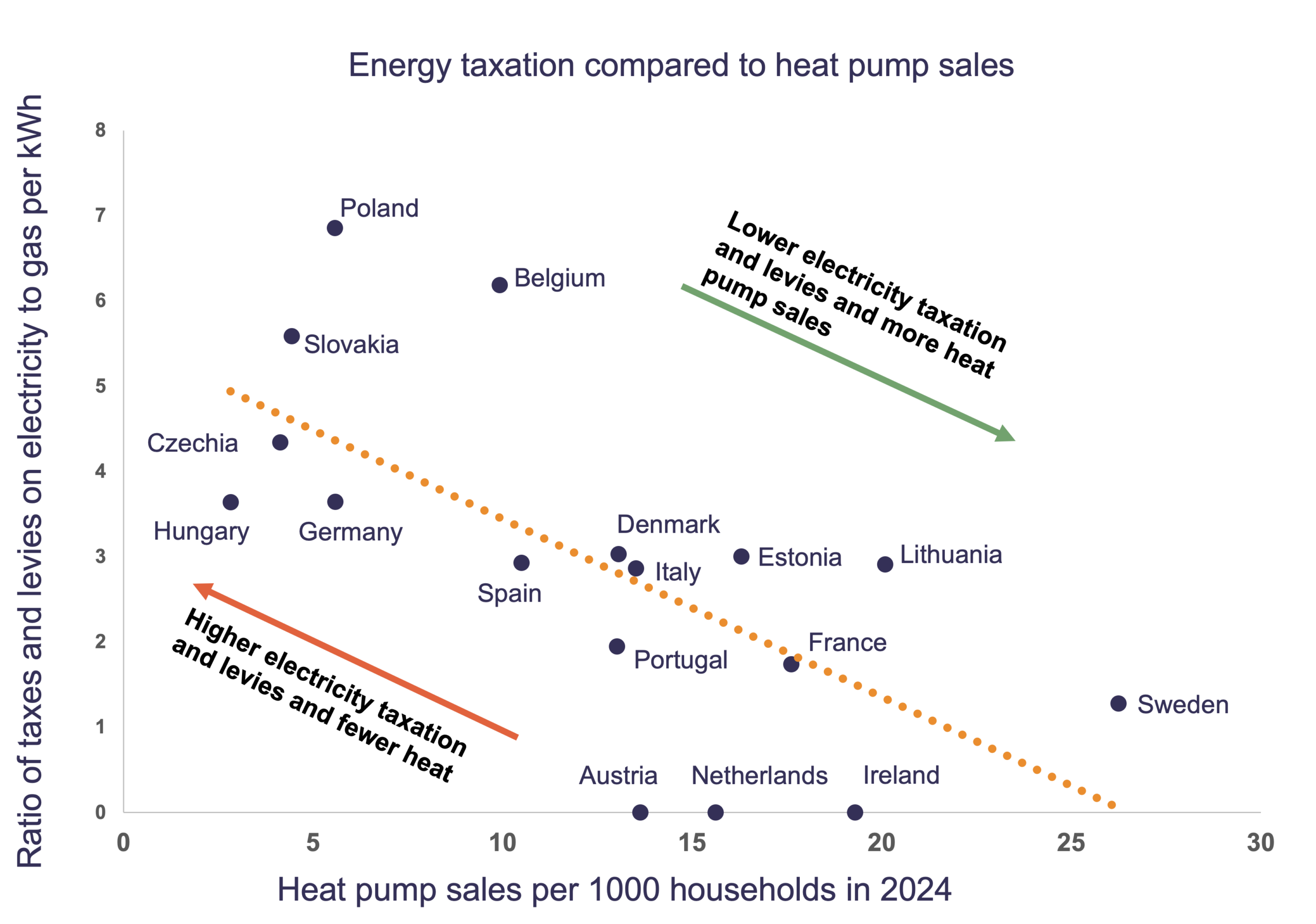 In contrast, countries that ensure electricity is taxed less heavily than gas make heat pumps more affordable and attractive to consumers, and this is shown in the sales figures.